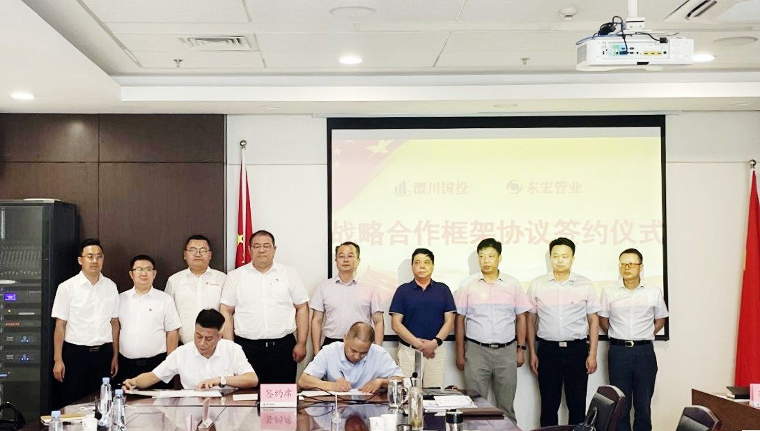 6月28日,公司與山東東宏管業簽署戰略合作框架協議,發揮各自優勢進行產業鏈招商、水務水利項目合作。東宏管業副董事長、總裁倪奉堯,澴川國投總經理陳情出席簽約儀式并講話。